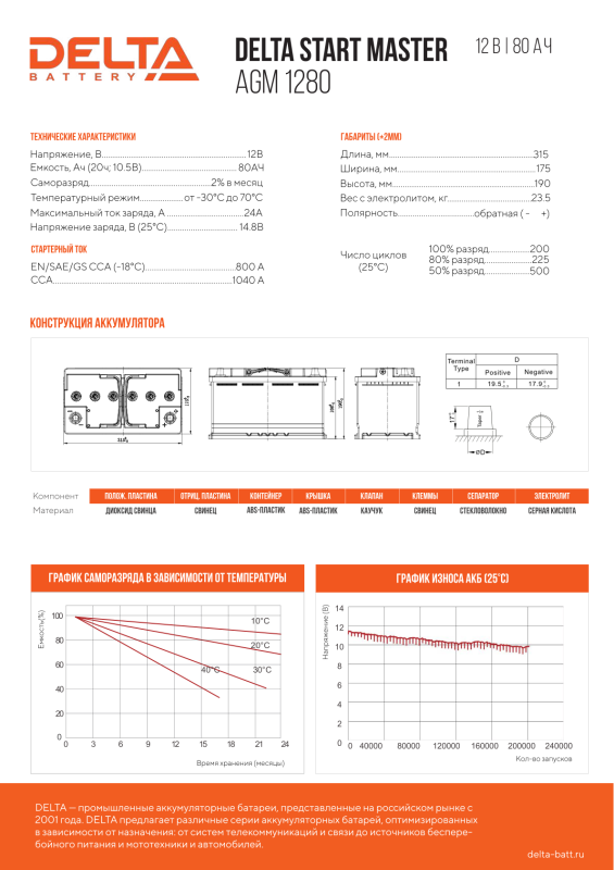 Купить Аккумулятор DELTA START MASTER AGM 80 Ач обр. пол. 800А 315x175x190 вы можете в компании Магазин Аккумуляторов AKBSTART , оформив заказ в интернет магазине, или отправив заявку по почте, а также по телефону или в офисе компании.