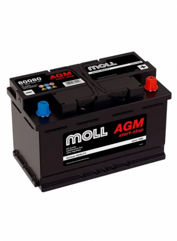 Аккумулятор MOLL AGM 80 Ач обр. пол. 800А 315х175х190
