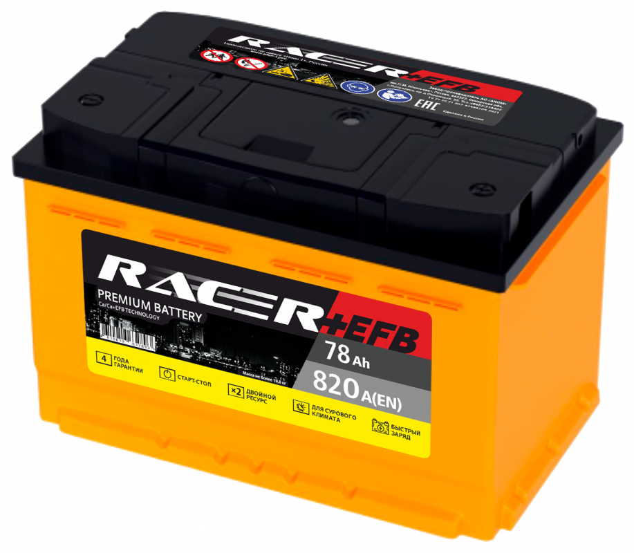 Аккумулятор RACER EFB (Kainar) 78 Ач прям. пол. 820A 278x175x190