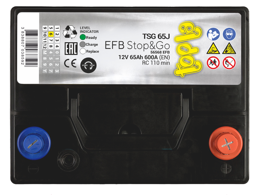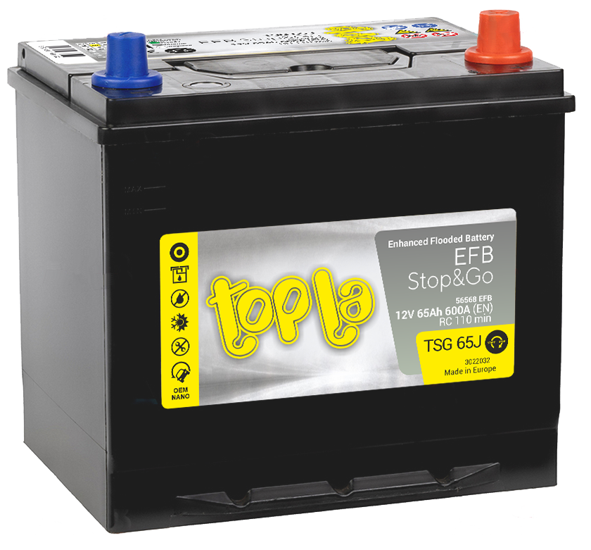 Аккумулятор Topla EFB STOP & GO 65 Ач обр. пол. 600A 230x173x220 бортик