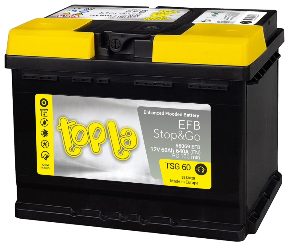 Аккумулятор Topla EFB TSG60 STOP & GO 60 Ач прям. пол. 640A 242x175x190