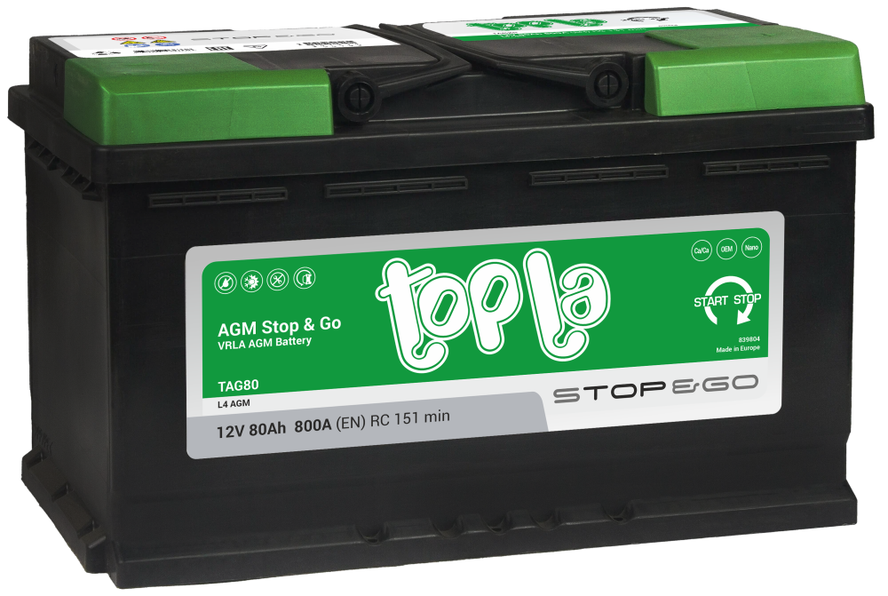 Topla AGM Stop&Go Идеально подходит для автомобилей с большим количеством электрооборудования