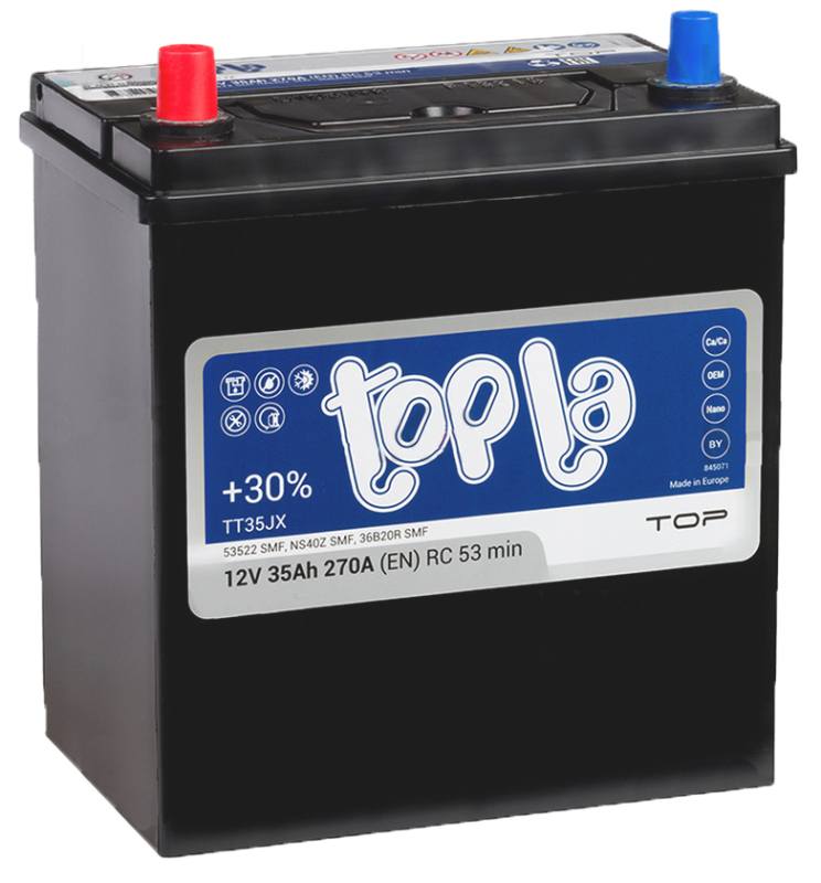 Topla — бренд автомобильных аккумуляторов, известный на рынке как надежный и высококачественный производитель АКБ. Батареи изготавливаются в Словении на одном из лучших заводов Европы TAB Tovarna akumulatorskih batareij d.d.