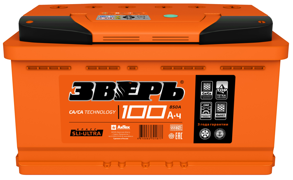 Аккумулятор Зверь 100 Ач обр. пол. 940А 353х175х190