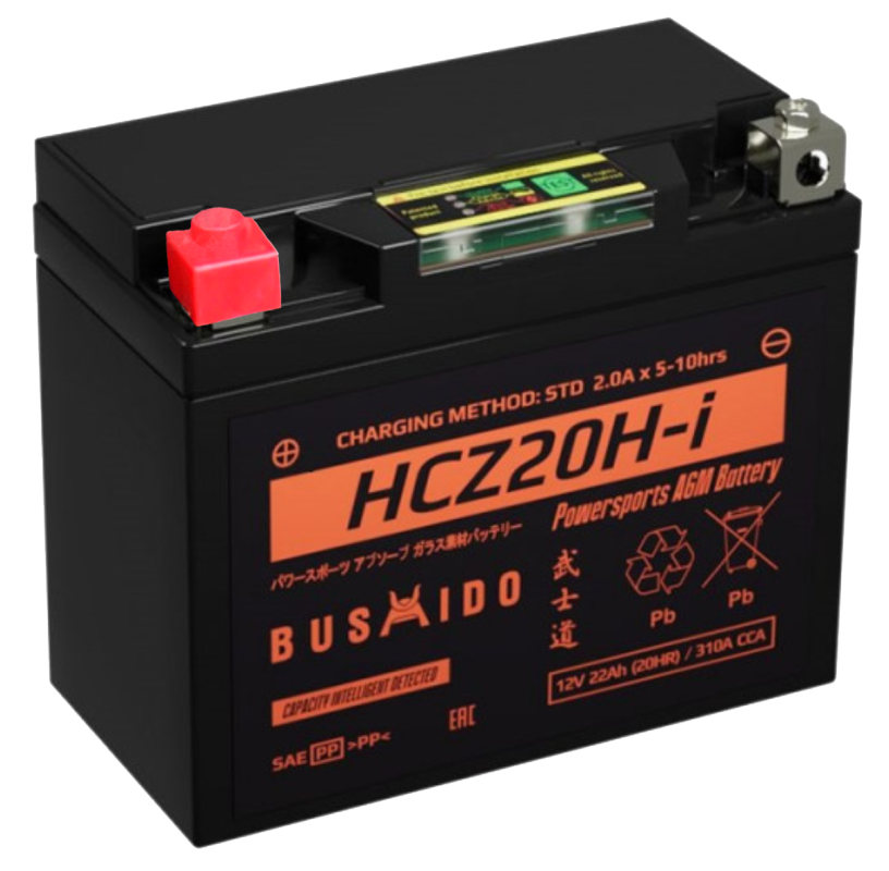 Аккумулятор для мототехники BUSHIDO AGM HCZ20H-i 22Ач 310A прям. пол. 177x88x155 (YTX20-BS, YTX20H)