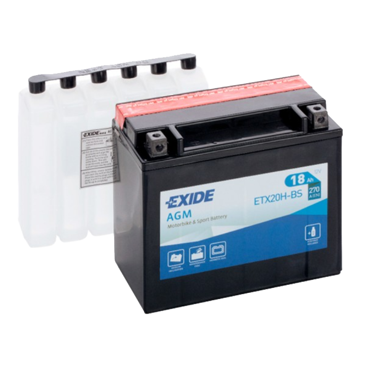 Аккумулятор для мототехники EXIDE AGM ETX20H-BS 18Ач прям. пол. 270А 175x87x155 (YTX20L-BS, YTX20H-BS)