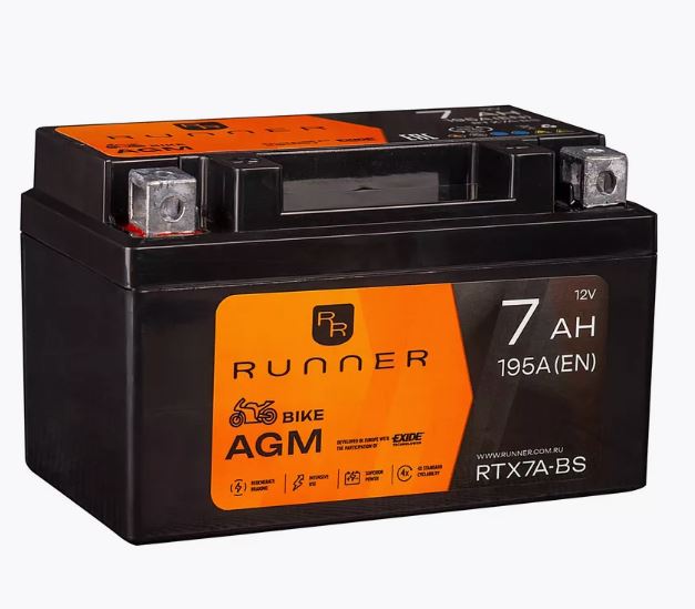 Аккумулятор для мототехники RUNNER AGM 7Ah 195А прям. пол. 150x87x93 (RTX7A-BS, YTX7A-BS, 12N7B-4B)
