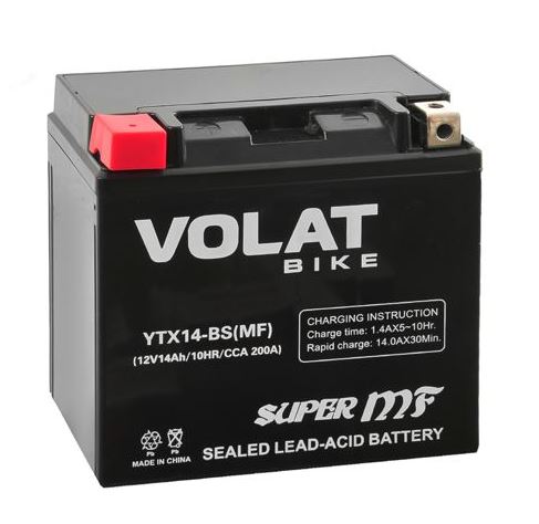 Аккумулятор для мототехники VOLAT MF 14Аh 200А прям. пол. 150x87x145 (YTX14-BS)